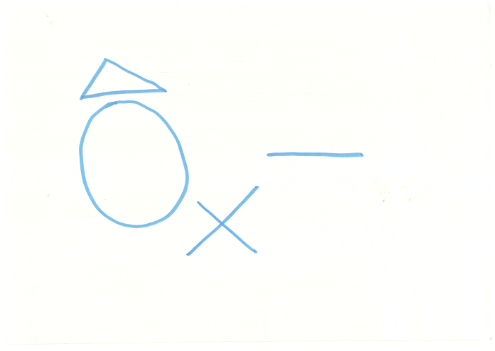 Ils voient d'un côté un rond avec un triangle dessus et de l'autre une croix avec une barre.